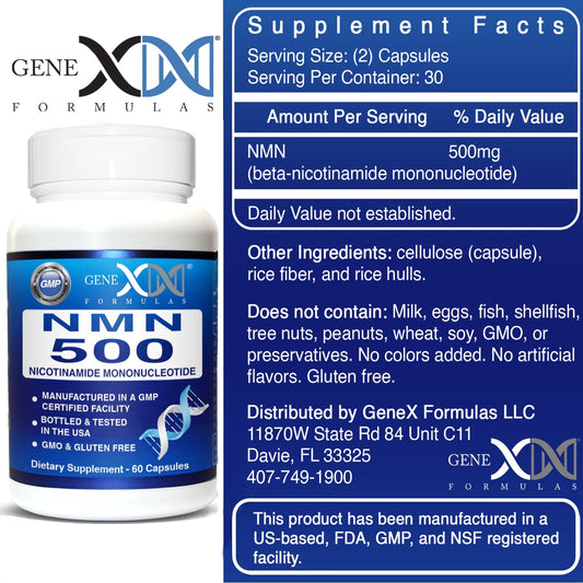 Genex Formulas NMN 500mg Nicotinamide Mononucleotide Supplement (60 Capsules)